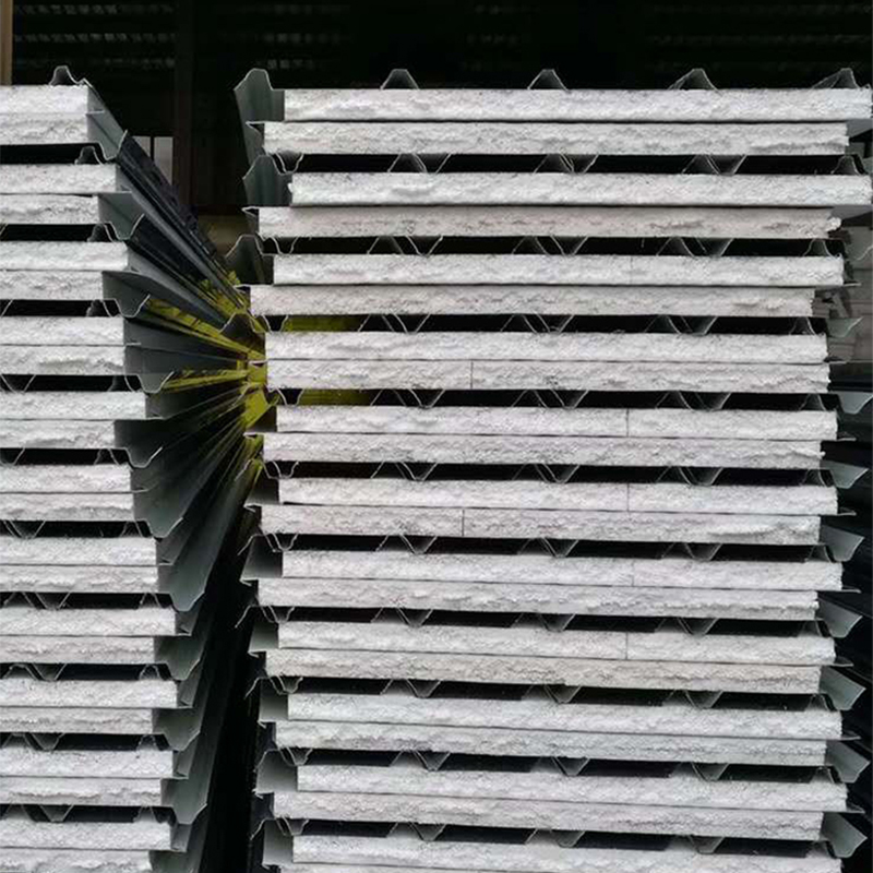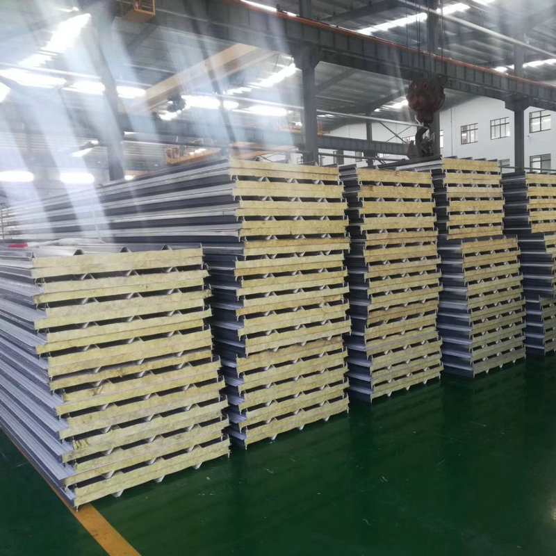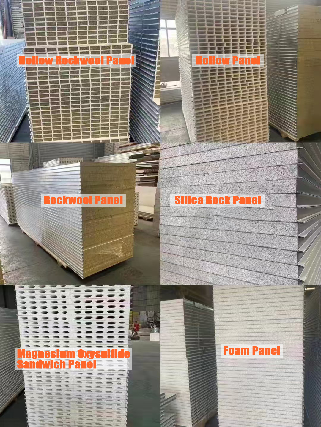 Su estructura incluye dos capas de láminas de metal y un material central en el medio. Los materiales centrales comunes incluyen poliuretano y lana de roca. Estos materiales le dan a los paneles sándwich de acero de color un buen aislamiento térmico, aislamiento acústico y resistencia al fuego.