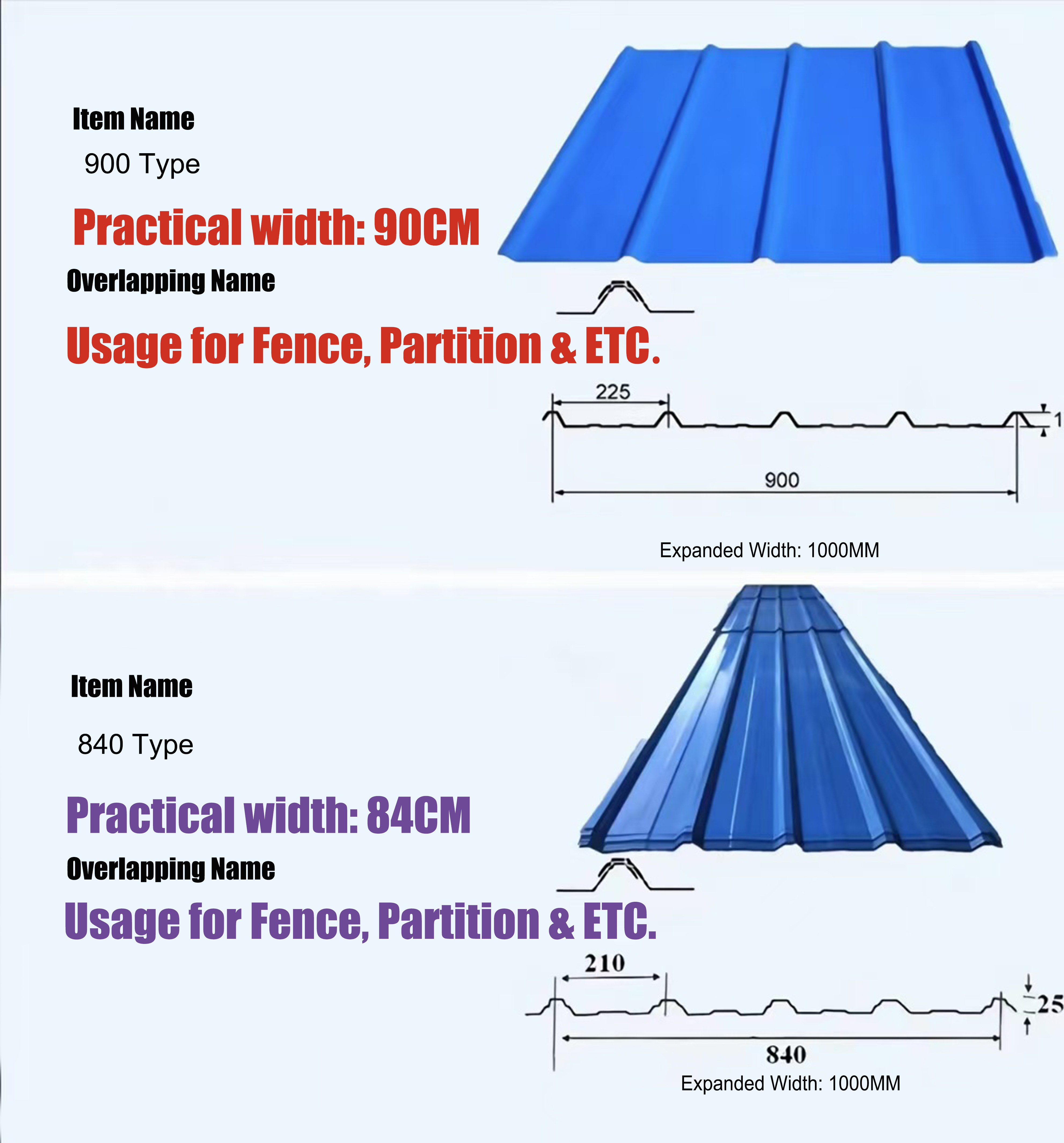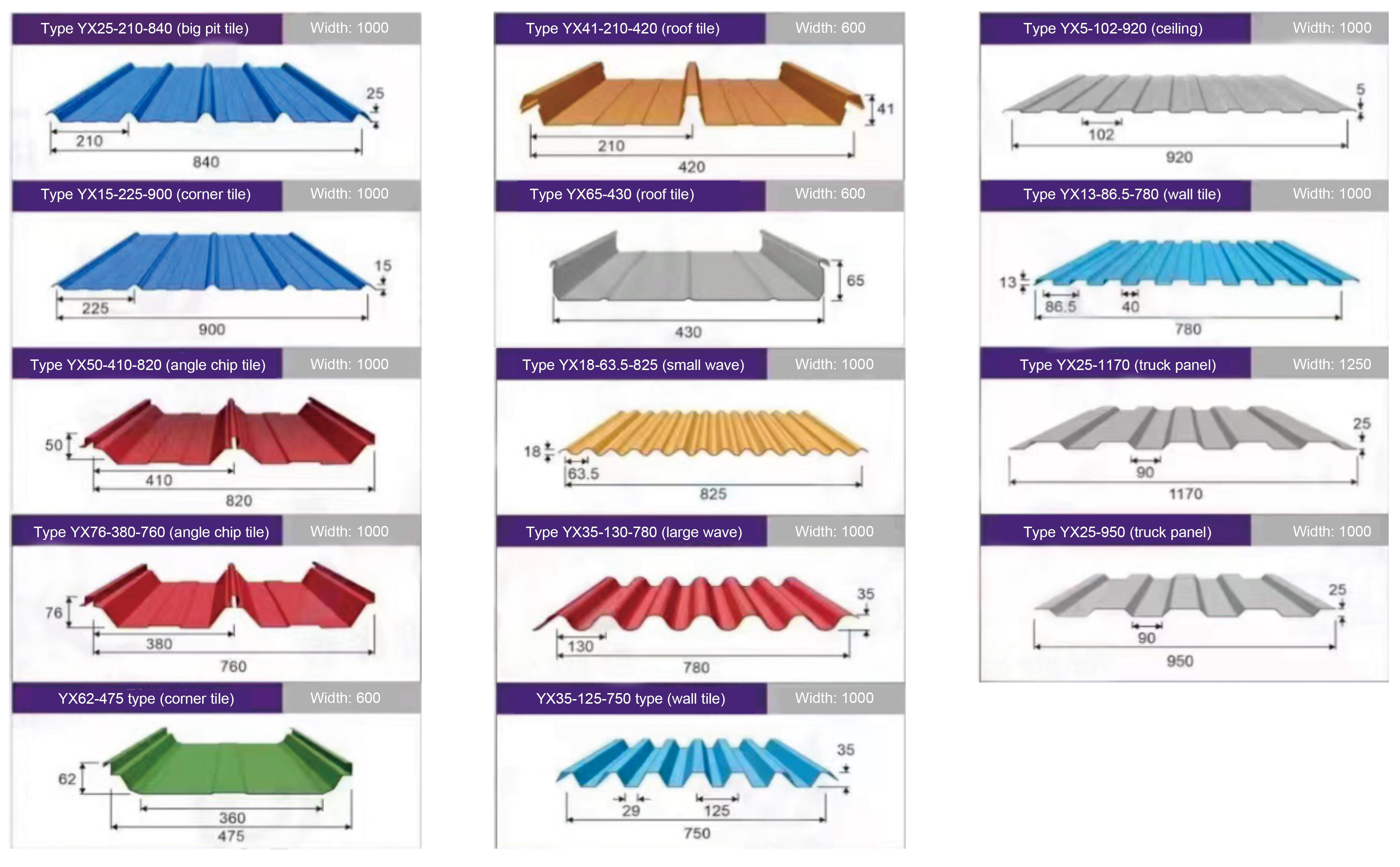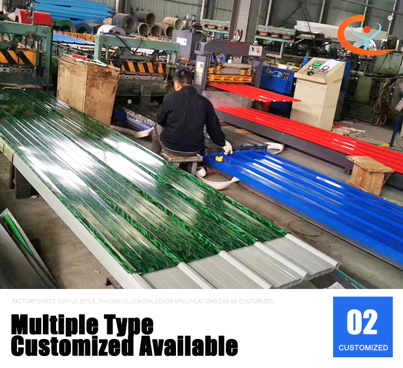 Azulejos de acero de colores, También conocidas como tejas corrugadas de colores, son láminas corrugadas hechas de placas de acero recubiertas de colores, laminadas y dobladas en frío en varias formas corrugadas.
