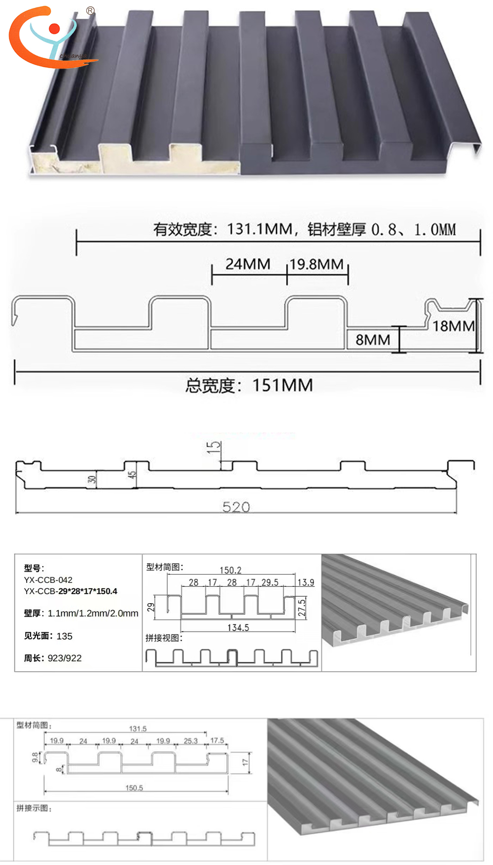 | Diagrama del tamaño del panel de gran pared adiabático de aleación de aluminio, teja Chuanya |