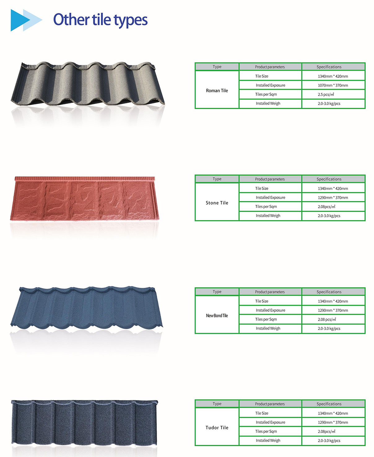 Las tejas metálicas de piedra de colores son un nuevo tipo de material para techos de alta gama producido con tecnología de alta tecnología.