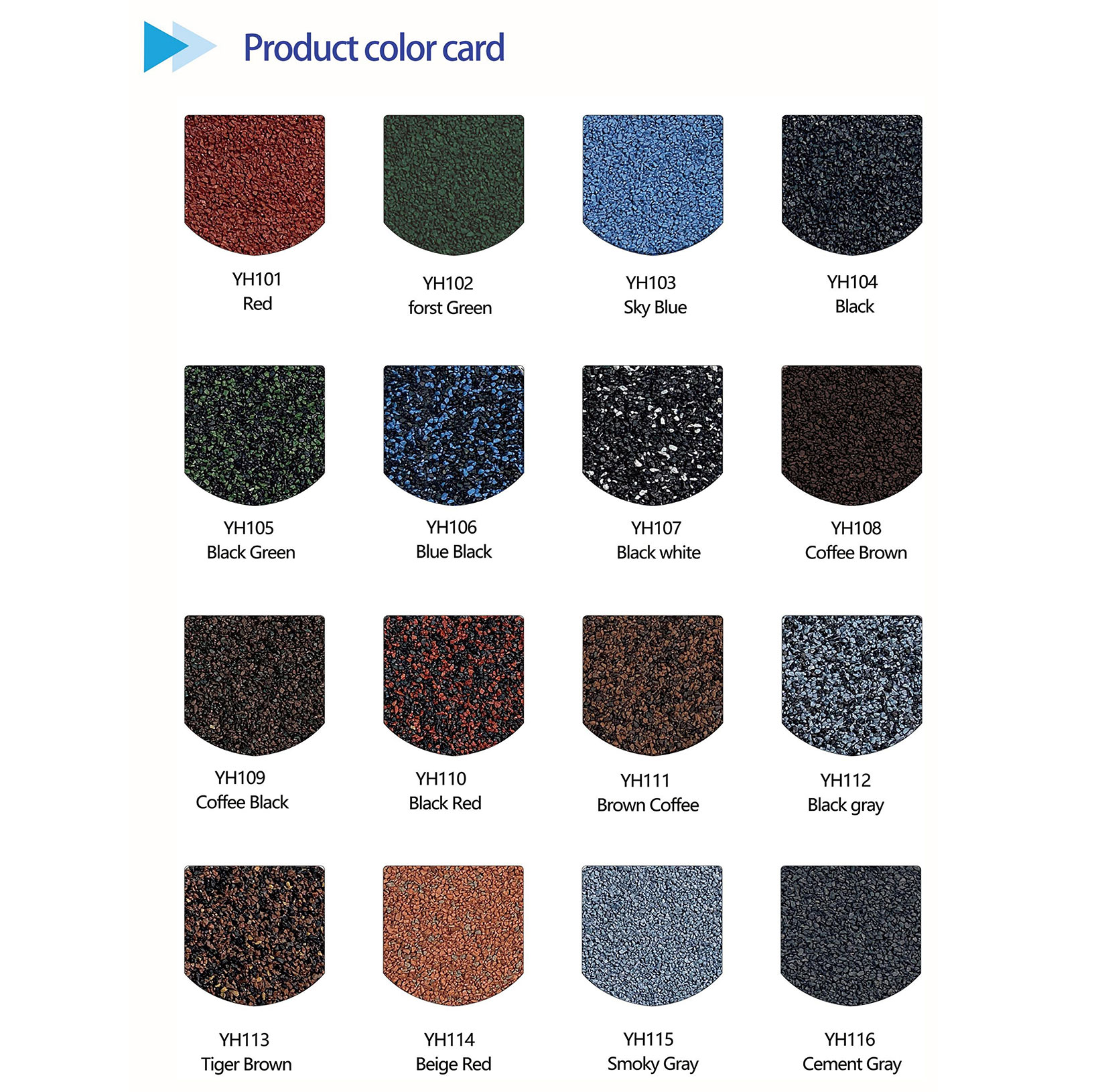 La superficie de las losas metálicas de piedra de colores es arena coloreada sinterizada, que es la capa decorativa y la capa protectora base de las losas de piedra de colores.