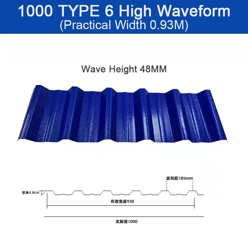 Referencia de envío, si es de 2,0 mm de espesor, frente a 1000 tipo de seis ondas altas, proporción 2,1 por espesor y por metros