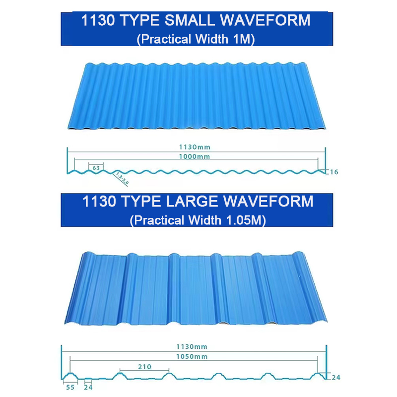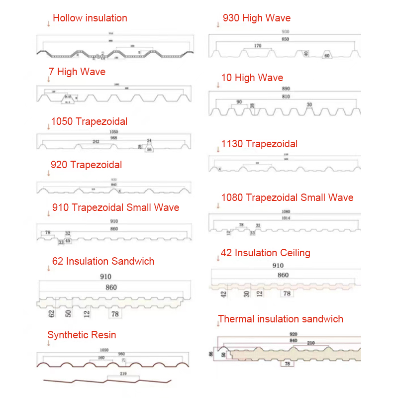 84/900/980 tipo convencional, 1000 tipo alto de seis ondas, 1130 forma de onda pequeña/grande, 920 trapezoidal, aislamiento hueco, etc. |